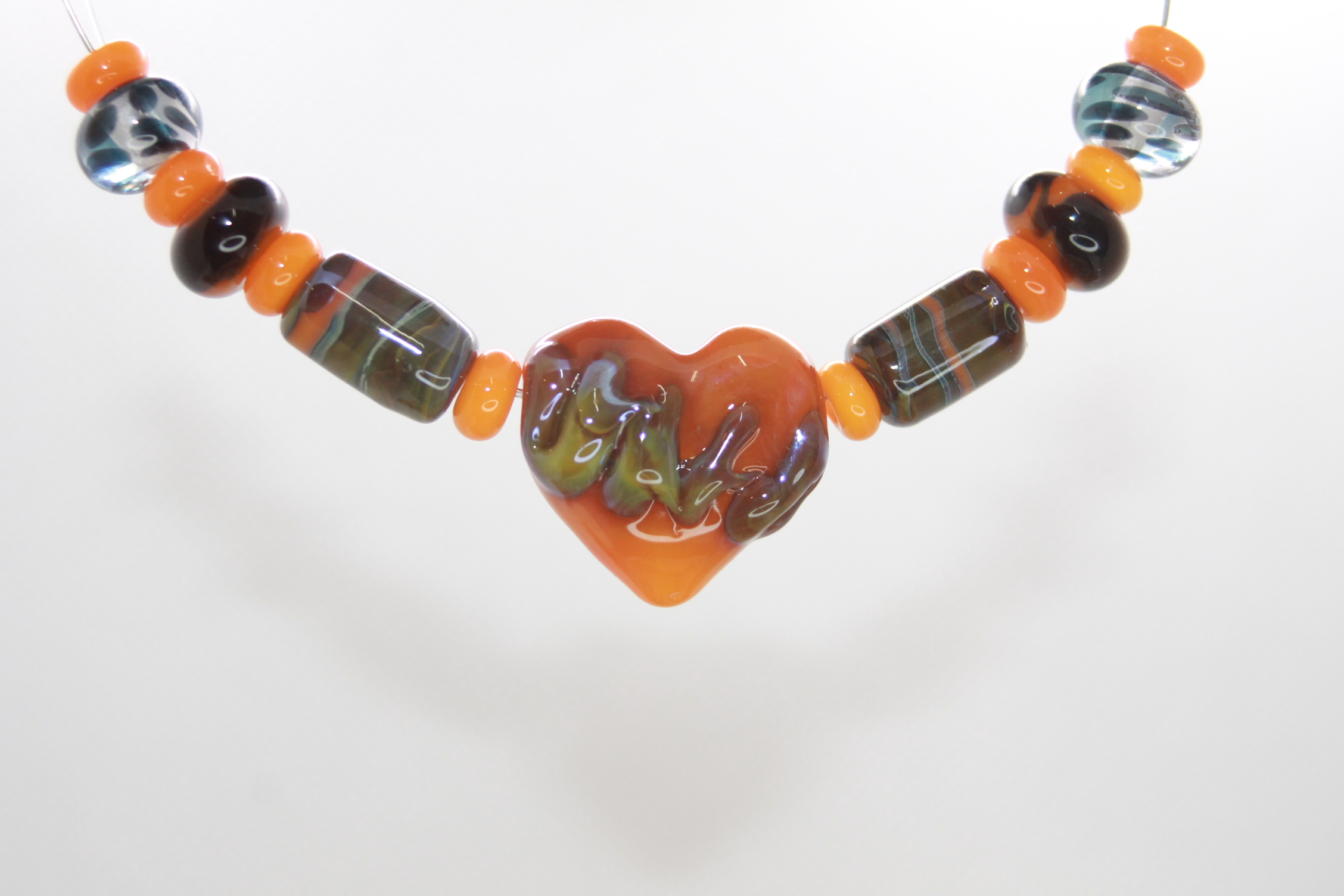 This heart has Double Helix silver glass on the front that creates a chameleon affect. All those cool colors comes from a single glass rod.