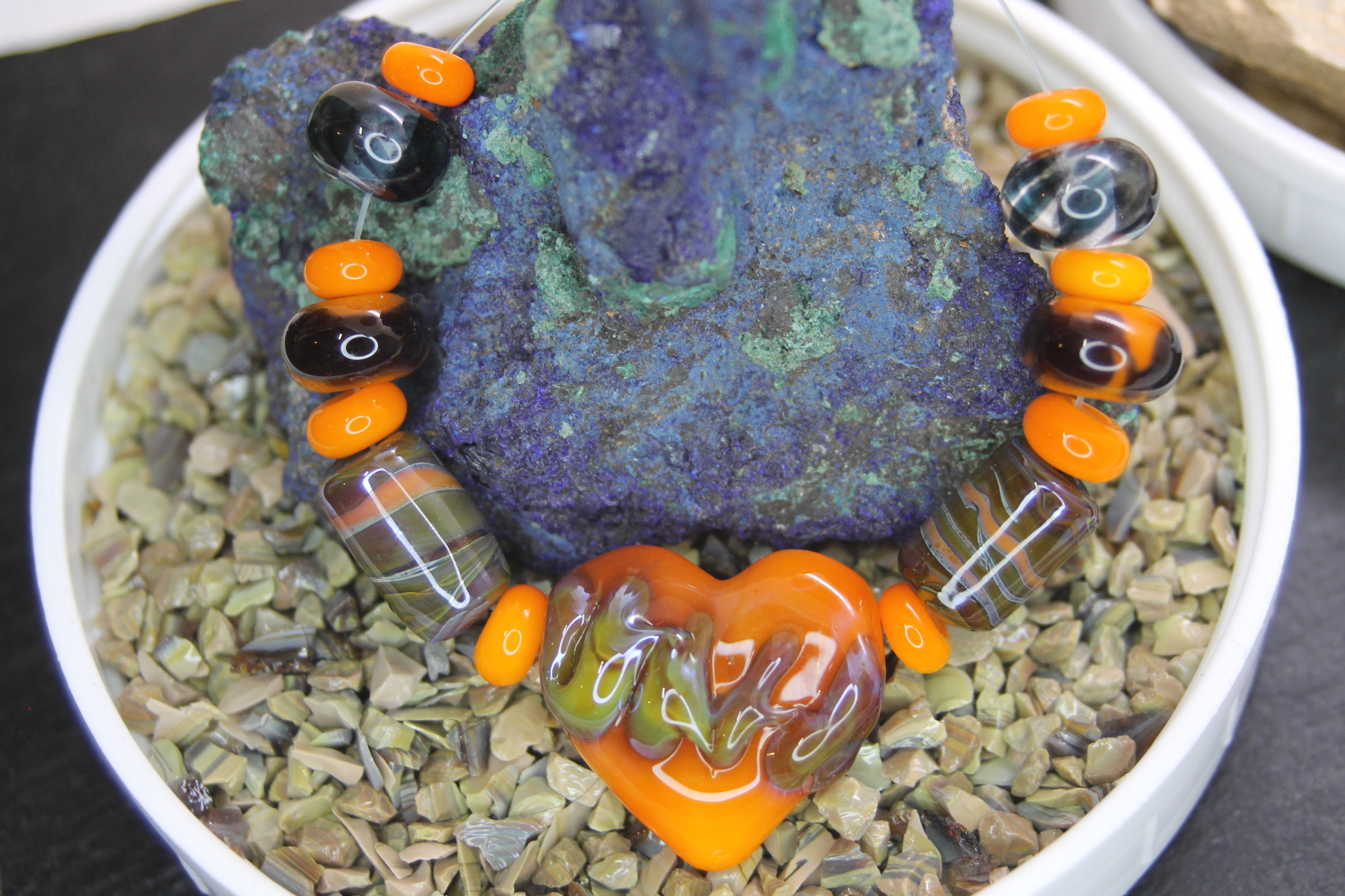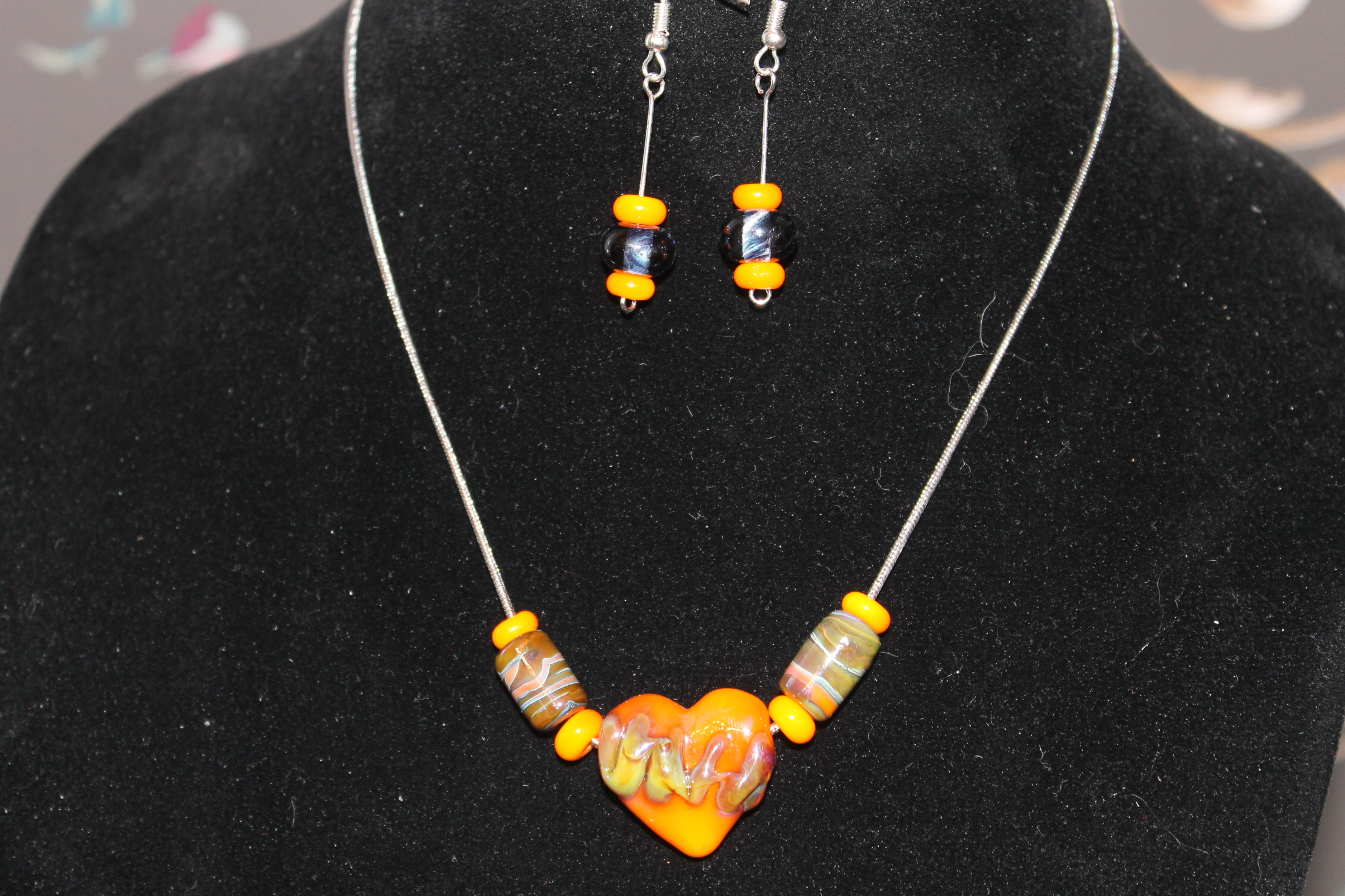 Be the first to review “Apricot Heart with Matching Rondelles and Barrels on an 18″ chain with matching earrings”