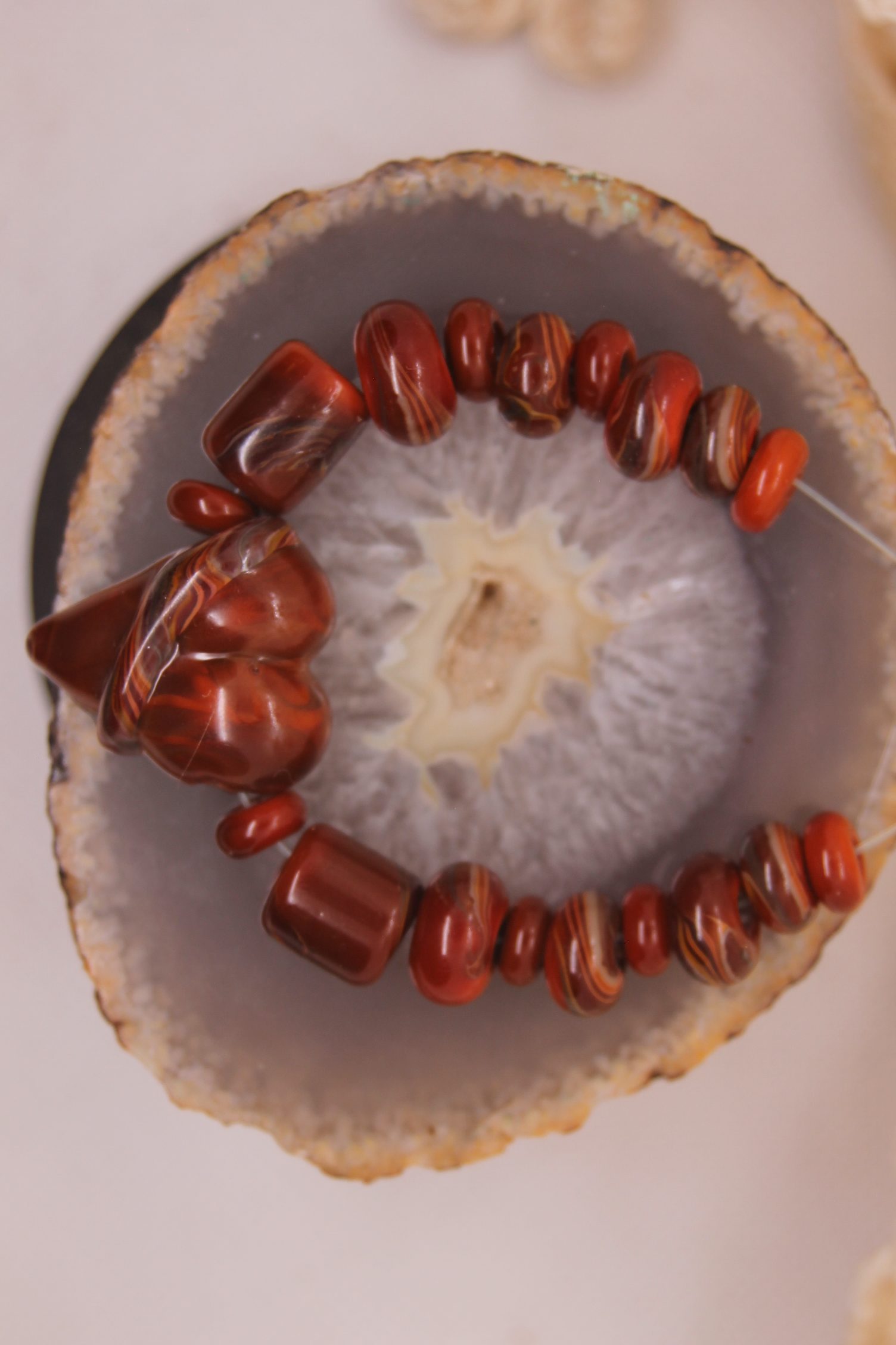 This is a mixture of Earthy reds and chestnut browns shaped into a heart with a sash.